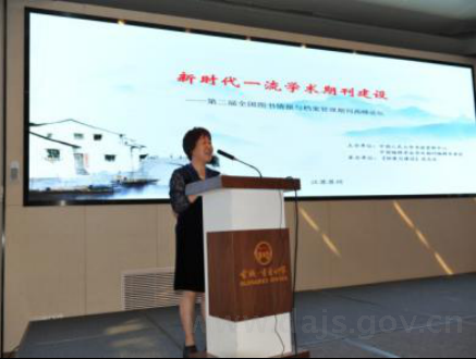 江蘇省檔案館副館長、《檔案與建設》編委會主任孫敏致辭,他向與會人員介紹了機構改革后江蘇檔案工作的開展情況,介紹了《檔案與建設》期刊的創立、發展,在繁榮檔案學術、推進江蘇檔案事業發展中發揮的重要作用。中國人民大學書報資料中心總編輯、中國編輯學會學術期刊編輯專委會副主任兼秘書長高自龍,就抓住建設一流學術期刊機遇、扎根學術期刊發展土壤、增強圖情檔學術期刊影響力等講話。南京大學信息管理學院教授沈固朝、中國社會科學評價研究院副院長蔣穎、中國人民大學書報資料中心評價研究部主任楊紅艷在論壇上分別作了主題報告。《中國圖書館學報》常務副主編吳澍時、《信息資源管理學報》主編李綱、《北京檔案》雜志社社長郭飛、《檔案與建設》主編方毓寧、《情報理論與實踐》副主編于偉、《山西檔案》主編張衛東、人大復印報刊資料《圖書館學情報學》《檔案學》編輯王丹等,就新政策視域下,打造學術期刊健康生態環境、完善期刊評價體系、推動圖情檔學科發展、新媒體應用實踐等作了專題發言。《圖書與情報》常務副主編魏志鵬、《檔案管理》總編輯劉永、《檔案》總編輯宛志亮、《浙江檔案》雜志社社長范良銀、《檔案學通訊》編輯部主任張全海、《蘭臺世界》總編輯孫海燕等,就圖情檔期刊價值追求、發展前景、建設方向等作了交流發言。論壇最終達成《圖情檔一流期刊建設蘇州共識》。