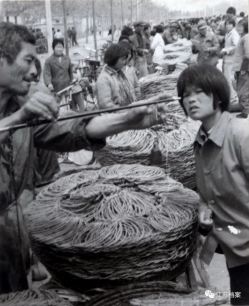 劉朝文,是上塘走出來的第一批大學生之一,上塘改革的親歷者、受益者,曾任泗洪縣人大常委會副主任。在他向江蘇省檔案館捐贈的一批珍貴照片里,人們可以看到,大包干后集貿市場里的上塘馓子都變得“興旺”起來。