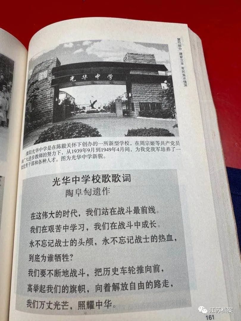 “忠于祖國,是一代代‘光華人’內心深處的砥柱基石。新中國成立前后,共有12位‘光華人’,獻出了自己年輕的生命”,鄭宇明告訴記者。在解放前夕,為即將接管溧陽,中共華中工委編印了一本《溧陽概況》,在文教調查當中,認為光華中學“在群眾中威信較高,戰時學生運動激烈進步、長期有我黨活動”。