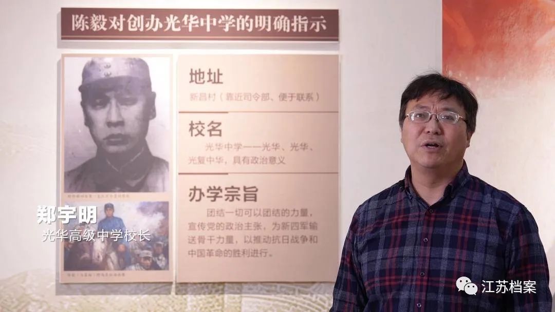 鄭宇明告訴記者,為了便于對當時青年的培養,以及發揮革命青年在溧陽區域當中的作用,光華中學選擇了離新四軍江南指揮部不遠的新昌蔣氏宗祠作為校舍,創辦后,陳毅對學校的辦學宗旨進一步明確,希望團結一切可以團結的力量,來宣傳黨的抗日主張,同時來培養新四軍的骨干力量。周宗姬就是在我們黨培養下的學校第一任校長,他忠實踐行了陳毅的辦學宗旨。