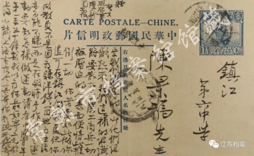 這張紅色明信片反映了蕭楚女希望推翻外國資本壓迫、推翻軍閥統治、實現民族復興的愿望,也見證了陳震寰與蕭楚女關于救國救民途徑的思想交流。從陳震寰后來所從事的活動中可以看出,他聽取了蕭楚女的意見。在鎮江做教員期間,積極從事青年運動,建立了鎮江第一個共青團支部。1937年抗日戰爭全面爆發后,他在家鄉常熟組織了一支最大的民間抗日武裝,配合新四軍主力部隊進行抗日斗爭,1941年在日偽“清鄉”運動中,不幸被捕,寧死不屈,壯烈犧牲。