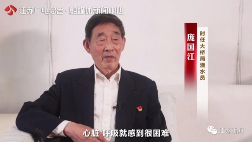 時任大橋局潛水員龐國江:下到59米的時候,心臟、呼吸就感到很困難,而且嘴就麻了,用了將近三個月時間,反復地適應這種環境,這是黨交給我們的任務,所以我們就拼命地闖啊,終于下到72米。