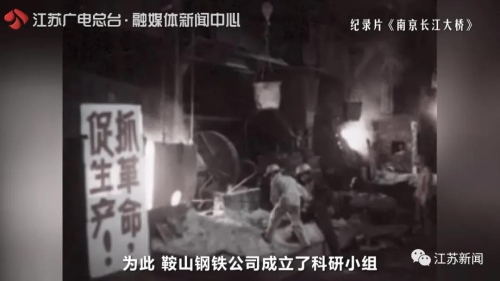江蘇省檔案館檔案資源開發處朱萬悅:中國政府決定背水一戰,南京長江大橋的鋼梁所用的鋼材不再依靠進口。為此,鞍山鋼鐵公司成立了科研小組,兩年的時間里無數次實驗,終于煉制出了16錳低合金橋梁鋼,被稱作"爭氣鋼"。這種鋼材經過歲月的考驗,至今依然是中國橋梁行業用途最廣的一種鋼材。