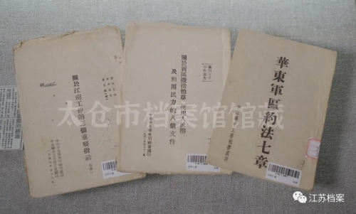 黨的七屆二中全會后,黨中央下達了一系列文件,對全國解放的各項工作作了重要指示。太倉市檔案館還保存著當時重要的三冊文件匯編,文件主題分別是《關于江南工作的三個重要指示(草案)》《華東軍區約法七章》《關于新區征借糧草、使用人民幣及動用民力的八個文件》。其中在《中央關于新區征借糧草的規定》中就寫明“征借之主要對象,為地主富農,其次為中農”,“凡征借之糧草,統由征借機關發給糧草票或預借證,以便將來向人民民主政府抵繳公糧田賦”。