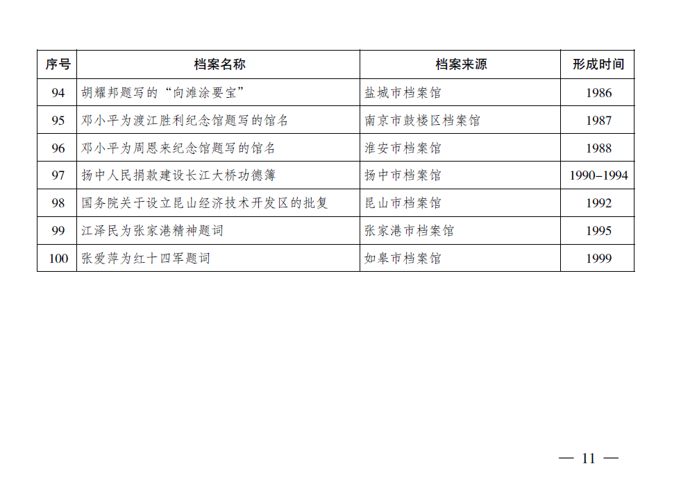 附件:江蘇省百件紅色珍檔入選名錄