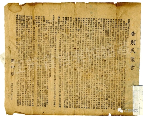“親愛的父老兄弟姐妹們:我們和你們的聯系,正同血和肉一樣的密切,但是現在我們卻要忍痛向你們告別了。”這封飽含深情的告別書,字里行間洋溢著新四軍對江南百姓的不舍。