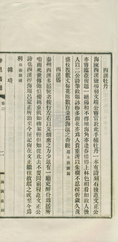 《海陵叢刻》第二種——《梓里舊聞》,清代夏荃(號退庵)編輯