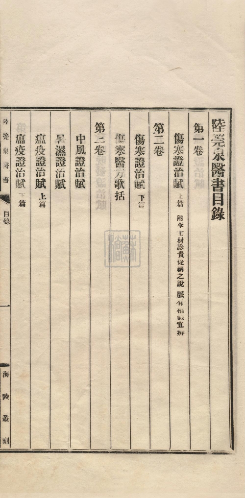 《海陵叢刻》第十五種——《陸莞泉醫書》,清代陸儋辰(字莞泉)所編的中醫學術著作