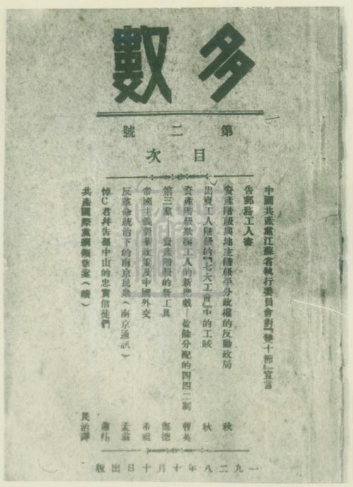 《多數(shù)》——中共江蘇省委機(jī)關(guān)刊物,1928年9月10日創(chuàng)刊,11月???,共出三期。