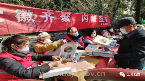 3月5日,為紀念毛主席等老一輩無產階級革命家向雷鋒同志學習題詞六十周年,省檔案館離退休干部黨支部組織志愿者服務隊配合南京市文明委,深入鼓樓區鳳凰街道、江東街道部分社區,開展家庭建檔咨詢。社區居民紛紛詢問了解家庭建檔的意義和方法,感知家庭檔案對于傳承優良家風和家庭美德的重要性。家庭檔案志愿者服務隊現場發放《家庭檔案實用手冊》、宣傳資料近300份。