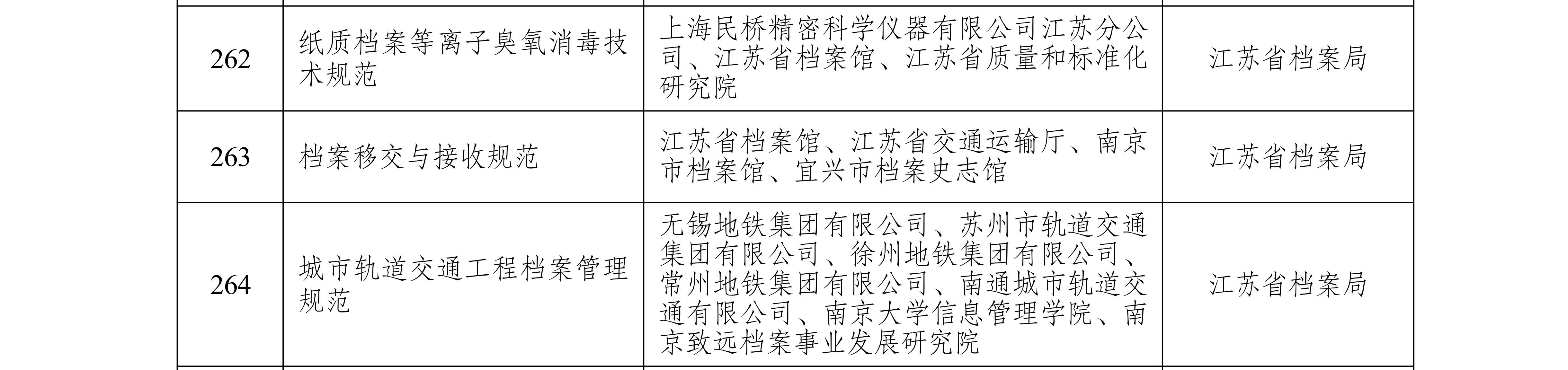 近日,江蘇省市場監督管理局發布了《省市場監管局關于下達2023年度江蘇省地方標準項目計劃的通知》(蘇市監標〔2023〕173 號),江蘇省檔案館組織申報的6個項目,其中《紙質檔案等離子臭氧消毒技術規范》《檔案移交與接收規范》《城市軌道交通工程檔案管理規范》3個項目立項成功,立項數量創新高。