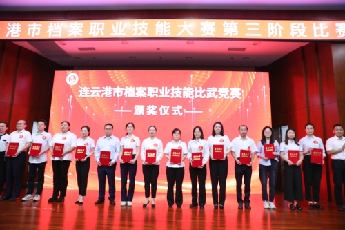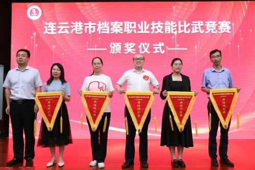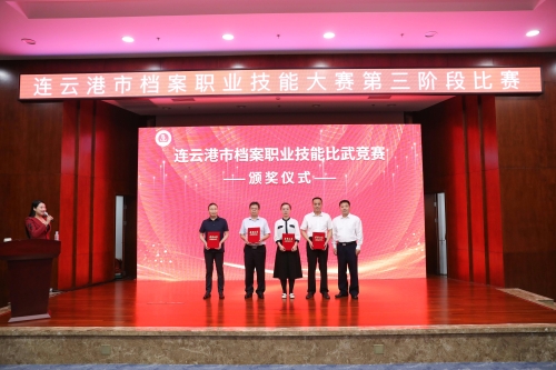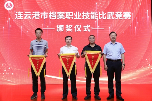 連云港市檔案館黨組書記、館長許思文為團體第一名、第二名、第三名頒獎