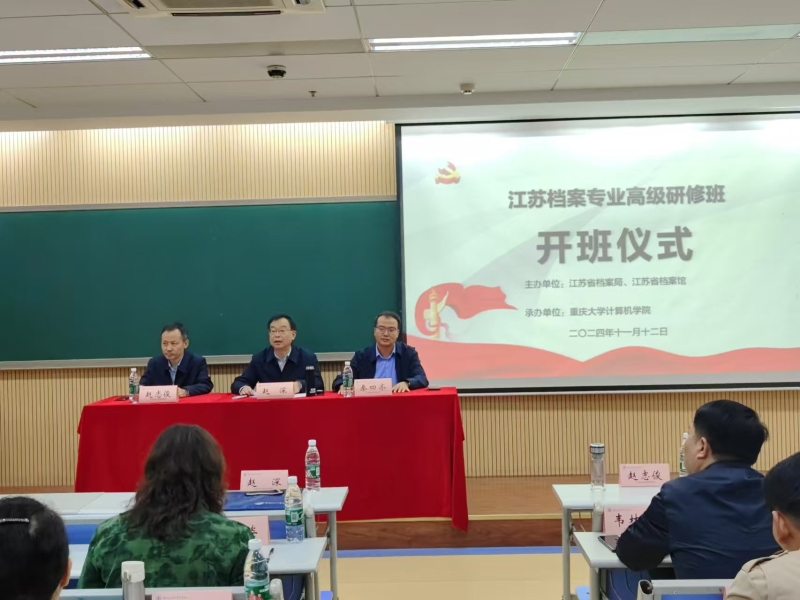 為進一步提高檔案專家業務素質和理論水平,11月11日至14日,江蘇省檔案專業高級研修班在重慶大學計算機學院舉辦。省檔案館一級巡視員、省檔案專業職稱工作領導小組組長趙深參加培訓并在開班式上作動員講話,省委辦公廳二級巡視員、檔案管理處處長趙志俊主持開班式,國家、省檔案“三支人才隊伍”部分成員,省檔案專業高評委庫部分成員,以及部分區市、縣(市、區)檔案局、檔案館領導共52人參加。
