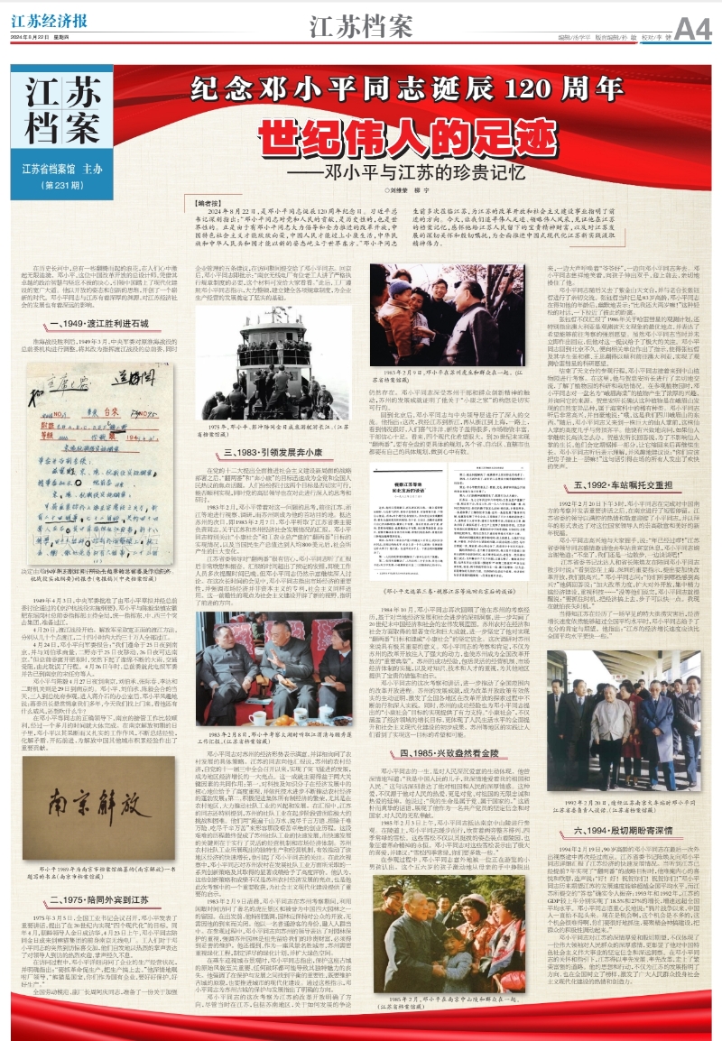 紀念鄧小平同志誕辰120周年 世紀偉人的足跡——鄧小平與江蘇的珍貴記憶 | 《江蘇檔案》特刊第231期