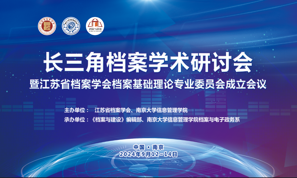9月13日,由江蘇省檔案學會、南京大學信息管理學院主辦的長三角檔案學術研討會在南京舉行。此次研討會圍繞“新質生產力視域下中國檔案事業的使命擔當與未來圖景”主題進行研討。省檔案館副館長蔡宜軍、南京大學社科處處長陳冬華出席并致辭。長三角地區10所高校的檔案學者、檔案學會負責人、《檔案與建設》編輯部工作人員共近70人參加。孫建軍、金波、傅榮校等18位專家學者作主旨報告。