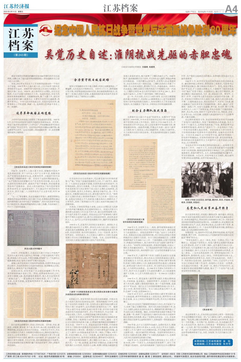吳覺歷史自述:淮陰抗戰先驅的赤膽忠魂|《江蘇檔案》特刊第243期