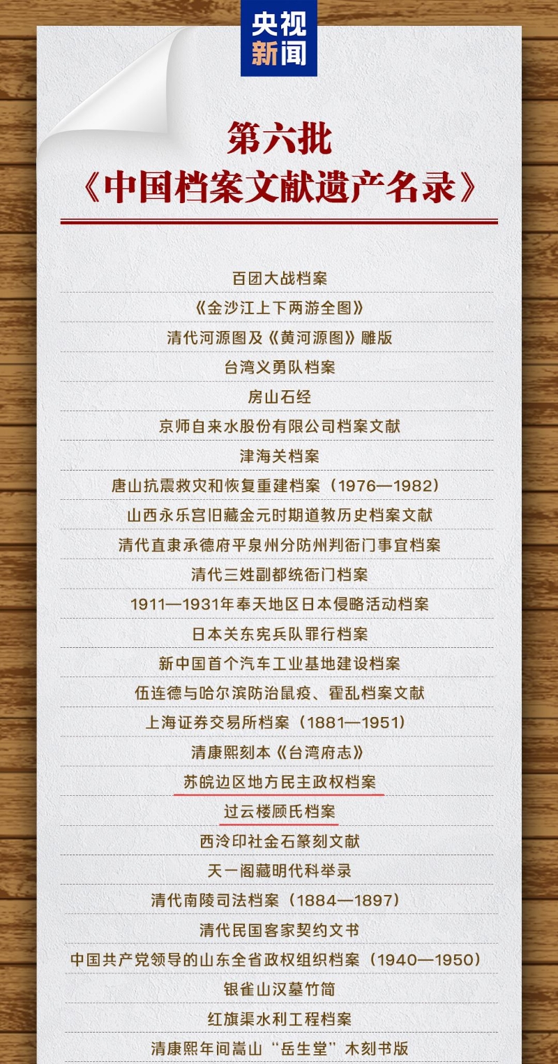 今天是第十八個(gè)“6·9”國際檔案日,國家檔案局在北京舉行新聞發(fā)布會(huì),正式公布第六批《中國檔案文獻(xiàn)遺產(chǎn)名錄》入選項(xiàng)目,其中江蘇兩項(xiàng)檔案文獻(xiàn)成功入選,分別為蘇皖邊區(qū)地方民主政權(quán)檔案、過云樓顧氏檔案。