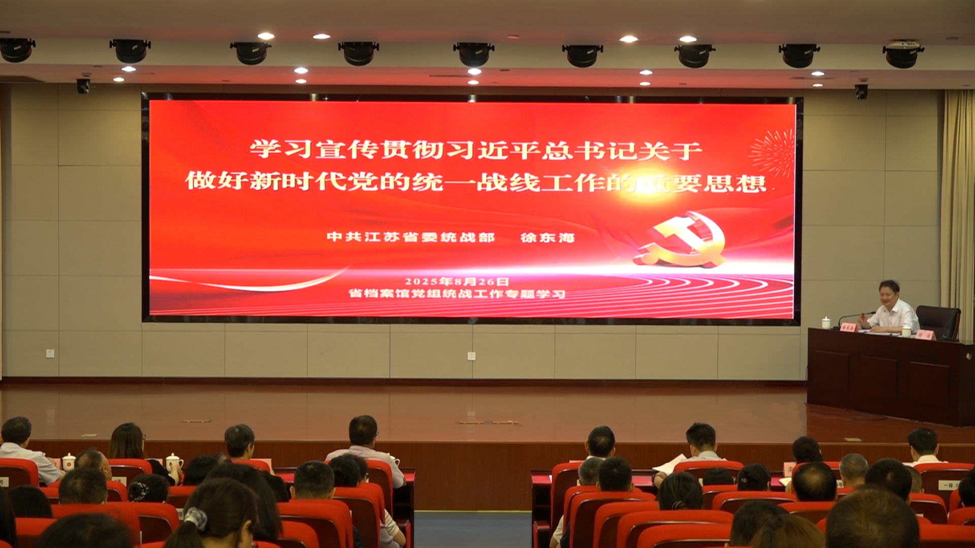 江蘇省委統戰部副部長徐東海從檔案工作與統戰工作、統戰工作責任制、《中國共產黨統一戰線工作條例》等六個方面,深刻解讀和闡釋了習近平總書記關于做好新時代黨的統一戰線工作的重要思想,重點提示了落實統戰工作責任制的實踐要求和工作舉措。